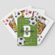 Este jogo personalizado tem um design de adeptos de futebol com campo de futebol e duas bolas de futebol ilustradas. Personalizou este jogo de cartas com um primeiro ou sobrenome e um inicial. Um presente esportivo personalizado para dar ao fã de futebol na sua vida que joga cartas.