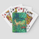 Cartões em um design de cervo da tapeçaria William Morris em um cenário de floresta de fantasia - veados bronzeados em um fundo azul e verde luxuoso de folhas e flores, acentuados com tulipas vermelhas