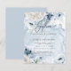 Convites para Casamento de baratos | Poppies Azuis Elegantes Russos - NOVO! Barato Lightweight Wedding Invtions em tons de azul empoeirado com branco marfim - uma coleção de papoilas e flores da dália acentuadas com verde-claro de eucalipto verde - tudo colocado sobre fundo azul esplaxado de aquarela - caligrafia manuscrita 'juntos' - fácil de personalizar modelo - design original por ©WhimsicalArtwork™ para o BarefootBride ™. Isto é parte de uma suite de artigos de papelaria de casamento, assim como Chás de fraldas, Aniversário e Convites de Natal. Para perguntas ou assistência, entre em contato com o designer indy.designer@yahoo.com.