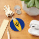 A bandeira de Barbados foi perfeitamente encaixada na FOB circular desta chaveiro. Um lembrete útil da herança Barbadiana.