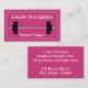 Este cartão de visita apresenta um fundo magenta, uma borda dupla linha com uma linha tracejada no meio e uma simples representação de uma campainha. Pode ser utilizado por um profissional, como um treinador de malhações, um treinador de peso, um treinador pessoal ou um especialista em malhações. O nome, profissão e contatos podem ser personalizados.