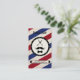 Barber compra Cartão de visita com bigode e gráfico de gravações de arco. A placa tem uma coloração tradicional vermelha/branca/azul. Totalmente personalizável, adicione as informações de sua empresa, altere o plano de fundo ou o logotipo. Perfeito para barbeiro, barbearia ou estilista.