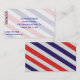 Este cartão é decorado com um poste de barbeiro sobreposto às listras vermelha, branca e azul.