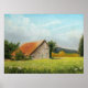 Esta pintura pastel original de Jayne Wilson exibia um velho celeiro resistente com um telhado vermelho, em um prado ensolarado.