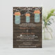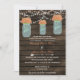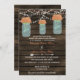 Rustic Barnwood, luzes de cordas balançando com flores de coral em convites de casamento de jarro de pedras. Produtos correspondentes também disponíveis.