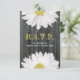 Um rsvp de casamento com um fundo de lenha na frente com margaridas no topo e no fundo. Disies também nas costas. Personalize o texto frente e verso com detalhes da sua ocasião. Procure itens correspondentes na Escola Rosa. com