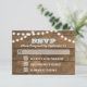 Estas placas RSVP rústicas são perfeitas para qualquer celebração de casamento. Cada linha de texto é perfeitamente personalizável para dizer exatamente o que você quer! Cheio correspondente à Coleção de Casamentos Barnwood Lights está disponível em várias cores de destaque.