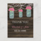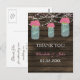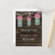 Rustic Barnwood, luzes de cordas balançando com flores cor-de-rosa num casamento de jarro de pedras Obrigado Cartões-postais. Produtos correspondentes também disponíveis.