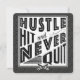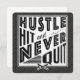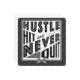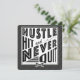 Baseball Hustle, Aperte E Nunca Saia De Convites. O texto diz: Hustle, Hit And Nunca Sair, com o ícone cruzado de tacos de beisebol e softball.