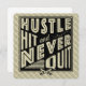 O texto diz: Hustle, Hit And Nunca Sair, com o ícone cruzado de tacos de beisebol e softball.