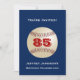 Um beisebol sobre um fundo azul escuro enfeita este singular e divertido Convite à Celebração do 85º Aniversário. O inverso tem letras brancas sobre fundo vermelho. Você pode facilmente alterar o texto para nome, idade, evento, data etc. Os fãs do esporte vão adorar! Todos os Direitos Reservados © 2014 Alan & Marcia Socolik.