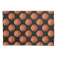 Maleta do travesseiro projetada com bolas de cesto laranja sobre fundo preto.