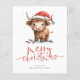 Bastante Orçamento, Santa Hat Highland Vaca Feliz Natal. Um orçamento com um preço menor de 4,5 x 5,6" de semivrofe de 110 lb, semelhante em espessura a um cartão postal. Há um por folha. Bonitinho festivo pelos desejos de férias, com este design divertido com uma doce vaca em terra alta no chapéu de Papai Noel. Feliz Natal está em um roteiro de na moda e personalize seu nome embaixo.