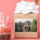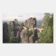 Vinheta-foto retangular da ponte Bastei (Bastei Brücke) sobre o rio Elba, que liga as icônicas formações rochosas das Montanhas Elba Sandstone, perto de Dresden, na Suiça Saxônica do Parque Nacional (Sächsische Schweiz), na Alemanha Oriental.