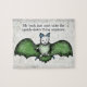 Bat With A Bad Back apresenta um morcego com problemas médicos, com um dorso ruim que não pode mais seguir a "coisa de cabeça para baixo". Em branco, verde e azul.