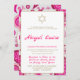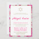 Marque a cena para uma celebração moderna do tema. Rosa é a cor de fundo para esta elegante design Bat Mitzvah personalizada paisley. Altere facilmente as informações para o seu próprio convite personalizado. De uma gama de papéis de carta personalizados dos Designs Finos de Chessie.