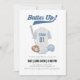 Bata-o no parque com este convite de beisebol "Batter Up" azul, perfeito para o primeiro aniversário de um menino! Com gráficos de baseball antigos e tons azuis clássicos, este design é ideal para uma celebração esportiva.