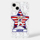 Um design de beisebol desportivo divertido com uma ilustração cartoon de um batedor de beisebol com uma estrela grande ao fundo com listras vermelhas em um sutil padrão de fundo de bolas de beisebol. É totalmente personalizável com o nome do jogador de beisebol ou do fã de beisebol. Design de peça com gráficos licenciados da Fábrica de Gráficos. Se você quiser que este design em uma combinação de cores diferente corresponda às suas próprias cores de equipe, entre em contato conosco através de nossa loja com a sua solicitação antes da compra. série de promocionais: sgb01