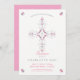 Este elegante e bonito batismo personalizável, ou batizante, convite apresenta um cálice rodeado por um rico ilustrado e a palavra "batismo" numa letra moderna. O verso apresenta um padrão quatrefoil branco com um fundo cor-de-rosa (que pode ser alterado para qualquer cor da sua escolha). Um convite perfeito para a ocasião religiosa especial de sua filha, pode ser personalizado para seu gosto.