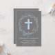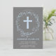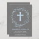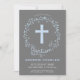 Este convite para o Batismo moderno ou para o Natal apresenta uma elegante camada azul de aquarela, bem como uma cruz azul. Ideal para a celebração religiosa de um bebê, pode ser personalizado com o nome do seu filho e os detalhes do evento.