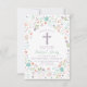 Este convite personalizável de batismo (batizante) bonito apresenta um quadro colorido de flores pastéis ilustradas e uma cruz correspondente. O nome, data, local e detalhes do evento podem ser personalizados para sua ocasião religiosa especial.