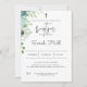Flores azuis e verdes e flores e folhas em convite minimalista ao batismo.