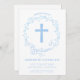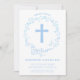 Este convite para Batismo ou Christening moderno apresenta uma elegante camada azul de aquarela, bem como uma cruz azul. Ideal para a celebração religiosa de um bebê, pode ser personalizado com o nome do seu filho e os detalhes do evento. A cor de fundo também pode ser alterada para seu gosto.