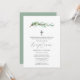 Batismo botânico religioso elegante ou batizantes armações de convites para o seu evento detalhe com um inseto de verde-rosmaninho. Seus detalhes de evento são definidos em uma elegante serifa tradicional e tipografia de script. Este convite neutro de gênero inclui uma escritura que você pode editar para incluir um verso de bíblia religiosa que se adequa às suas necessidades. A placa se reverte para uma cor verde de sábio complementar. O convite perfeito e neutro para primavera, verão, outono do outono, eventos temáticos rústicos ou jardins. Para ver mais modelos de batismo como esse visite www.zazzle.com/dotellabelle Art e design por Victoria Grigaliunas