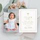 Um doce cartões de agradecimentos de batismo orçamentário com um belo quadro de brilho dourado e texto de batismo clássico editável com fotografia. Clique no botão editar para personalizar este design com seus detalhes e foto.