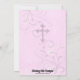 Um belo batismo bebê ou convite de Natal com um fundo e uma cruz cor-de-rosa com textura brilhante, bem como uma bonito fita orgânica rosa e um charme de cruz prateada.