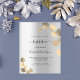 Um convite ao batismo moderno e elegante, neutro em termos de gênero. Fundo metálico de aspecto fino prateado decorado com ouro eucalipto, prigs. Personalize e adicione um nome e detalhes. Letras pretas coloridas.