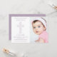 Este bonito cartão de batismo ou de convite batizante apresenta uma delicada cruz floral ilustrada e uma área para a fotografia da criança. Um convite perfeito para sua ocasião religiosa especial, o texto e a cor de fundo no verso podem ser facilmente personalizados de acordo com o seu gosto.