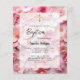 Lave as flores cor-de-rosa como fundo. Personalize e adicione um nome e detalhes. 1 folha = 1 convite impresso de borda a borda.