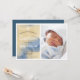 Este marinho moderno, azul e batismo dourado, oferece uma fotografia-quadro para uma fotografia do seu bebê. O fundo azul-marinho e amarelo-d'água oferece uma cruz branca e um texto personalizado para os detalhes do seu convite.