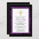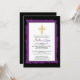 Comece o seu evento com o nosso quadro Purple sobre um batismo de fundo preto Baby Girl / convite à comunhão batizante com uma cruz de ouro. Fácil de personalizar, basta adicionar suas informações de evento e você está pronto para ir.