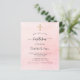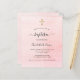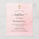 Um batismo moderno e elegante, celebrando uma menina. Um fundo cor-de-rosa pincelado decorado com pequenos brilhos de ouro, pontos e uma cruz de ouro. Personalize e adicione um nome e detalhes da parte. Letras pretas coloridas.