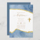 Batismo, Christening, 1º convite de comunião santa com uma cruz de ouro sagrado. Campos modelo de texto para ambos os lados para adicionar todos os detalhes do evento especial para filho ou filha.