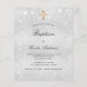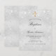Um convite ao batismo moderno, elegante e minimalista para adultos. Fundo metálico de aspecto fino prateado decorado com poeira falsa brilhante. Personalize e adicione um nome e detalhes. Letras pretas coloridas.