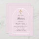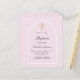 Um fundo cor-de-rosa pincelado e um quadro de arco. Personalize e um nome e detalhes da cerimônia. Escrito elegante com letra manual. Traseira: fundo cor-de-rosa pincelado.