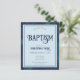 tipografia de script de rico. Igreja Baptism Blue e dourados convites para comemoração d'água. Você pode adicionar fotos à parte traseira ou texto adicional, se necessário.