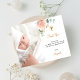Um cartões de agradecimentos de batismo moderno e elegante. Um fundo branco-quic decorado com uma cor-de-rosa-pinca-d'água, rosa floral de ouro, verde de eucalipto e folhas de ouro falsas. Personalize e adicione sua foto da criança, obrigado nota e nome.