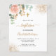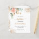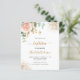Um fundo branco decorado com um verde de eucalipto, um rosa de ouro e rosa-rosa esbranquiçada, folhas de ouro e falsas gotas de ouro. Personalize e o nome e os detalhes da cerimônia. Letras pretas e ouros coloridas. Traseira: fundo branco com quedas de brilho de falso ouro