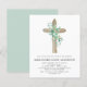 Eucalyptus e Wooden Cross Botanical Greenery Watercolor Cristã Convocações para o Batismo Religioso da Rapariga Verde do Orçamento.
