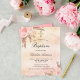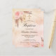 Um fundo rosa dourado, rosado, rosado e roxo, com aspecto metálico. Decorados com ouro rosa e flores cor-de-rosa, rosas, grama pampas e uma cruz de ouro. Personalize e adicione um nome e os detalhes.