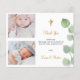 Um cartões de agradecimentos de batismo moderno e elegante. Um fundo branco chico decorado com verde de eucalipto. Personalize e adicione suas duas fotos das crianças, obrigado nota e nome. Sexo neutro.