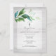 Esses convites únicos para batismo apresentam verde sobre um fundo de madeira rústica. Use os campos modelo para adicionar seus detalhes personalizados. Solicite cartões impressos on-line ou convites imprimíveis. Temas botânicos elegantes. Para ver mais designs religiosos como esta visite www.zazzle.com/dotellabelle Arte a aquarela exclusiva e design por Victoria Grigaliunas do Do Tell A Belle.