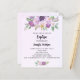 Um fundo violeta, lavanda, de cor aquosa. Decorados com flores violetas e púrpuras, de cor aquosa e verde e uma cruz de ouro. Personalize e adicione um nome e detalhes de recepção. 1 folha = 1 convite impresso de borda a borda.