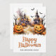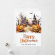 Feliz cartão de Halloween com ilustrações aquáticas de morcegos, jack o’lanternas e fantasmas. Personalize facilmente este cartão de Dia das Bruxas fofo com o seu nome e texto da família.