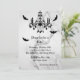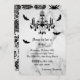 Um candelabro de cristal negro e morcegos de areia em um clássico fundo de mármore decoram o convite do Partido das Halloween. O dorso é ainda embelezado com uma cor damasco de aranha rico.