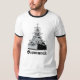 T-shirt with drawing of the famous German battleship Bismarck of world war II with the name of the ship written with fraktur letters.